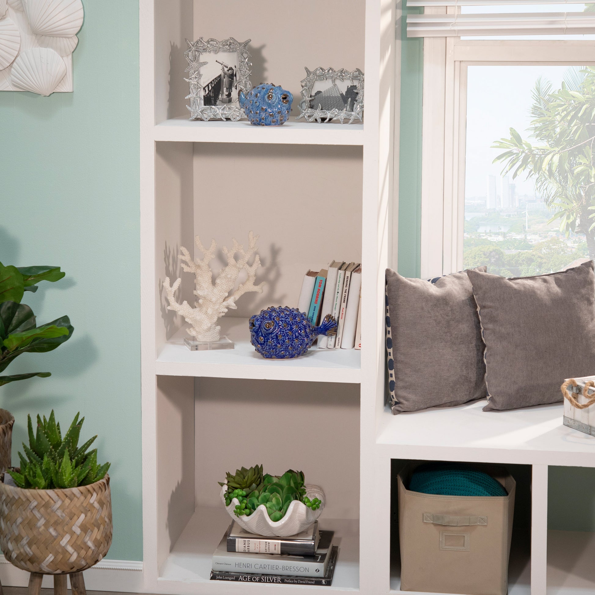 Ceramic Blowfish Figurine 10", Blue