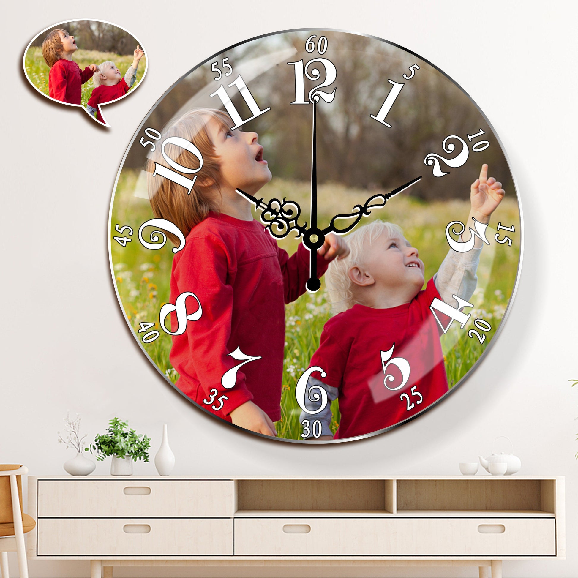15 Inch Personalized Photo Round Wall Clock, Custom Acrylic Home Decor