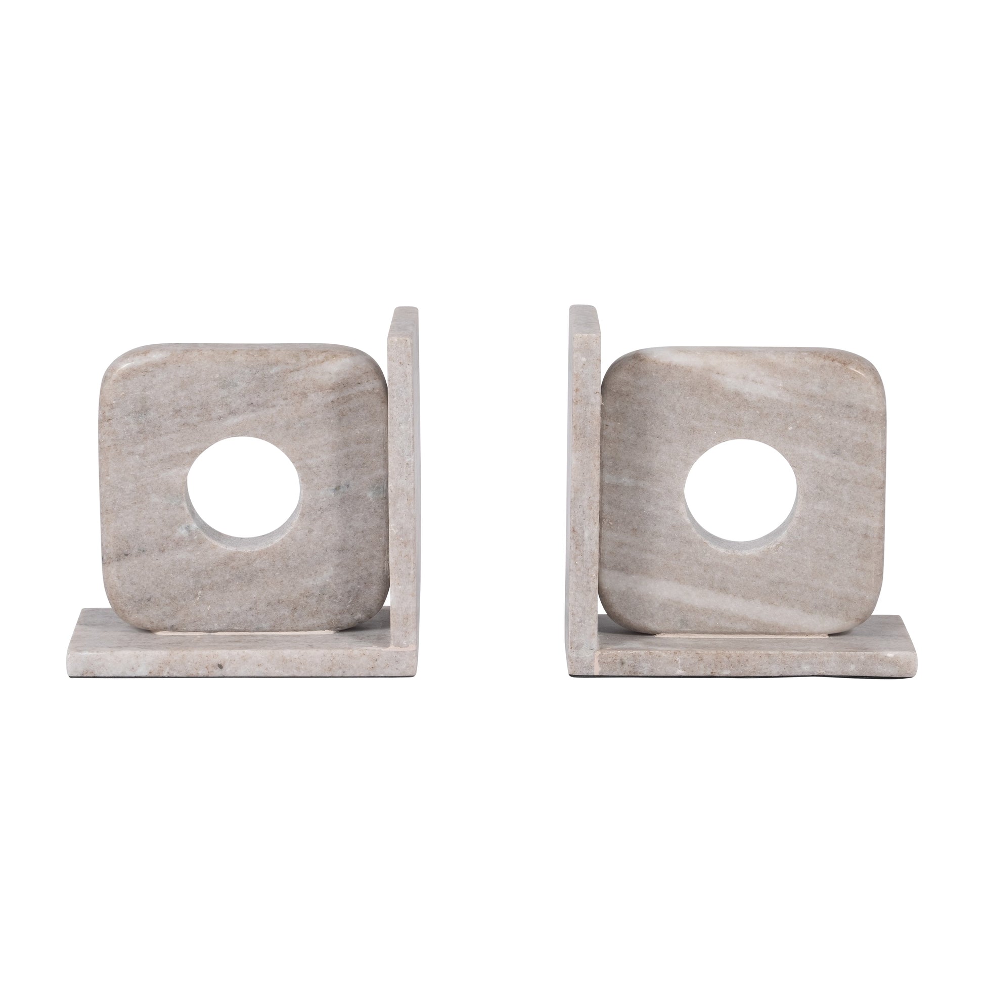 Marble, S/2 6" Cut Out Square Bookends, Tan