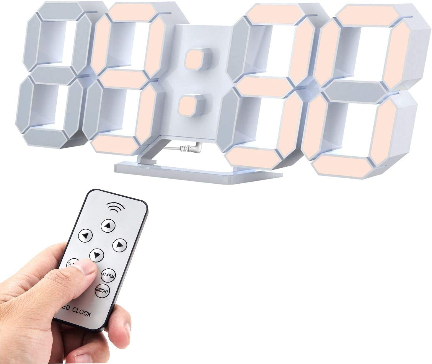 3D Led Clock Alarm Clock Desk Wall Clock 9.7 Inch 12/24 Hr Silent with Remote Control 50,000Hrs Led Life Temperature Nightlight Corded Electric
