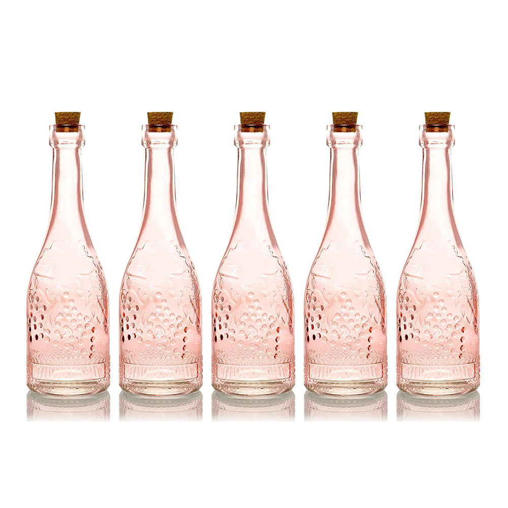 5 Pack - 6.6" Stella Pink Vintage Glass Bottle with Cork - DIY Wedding Flower Bud Vases