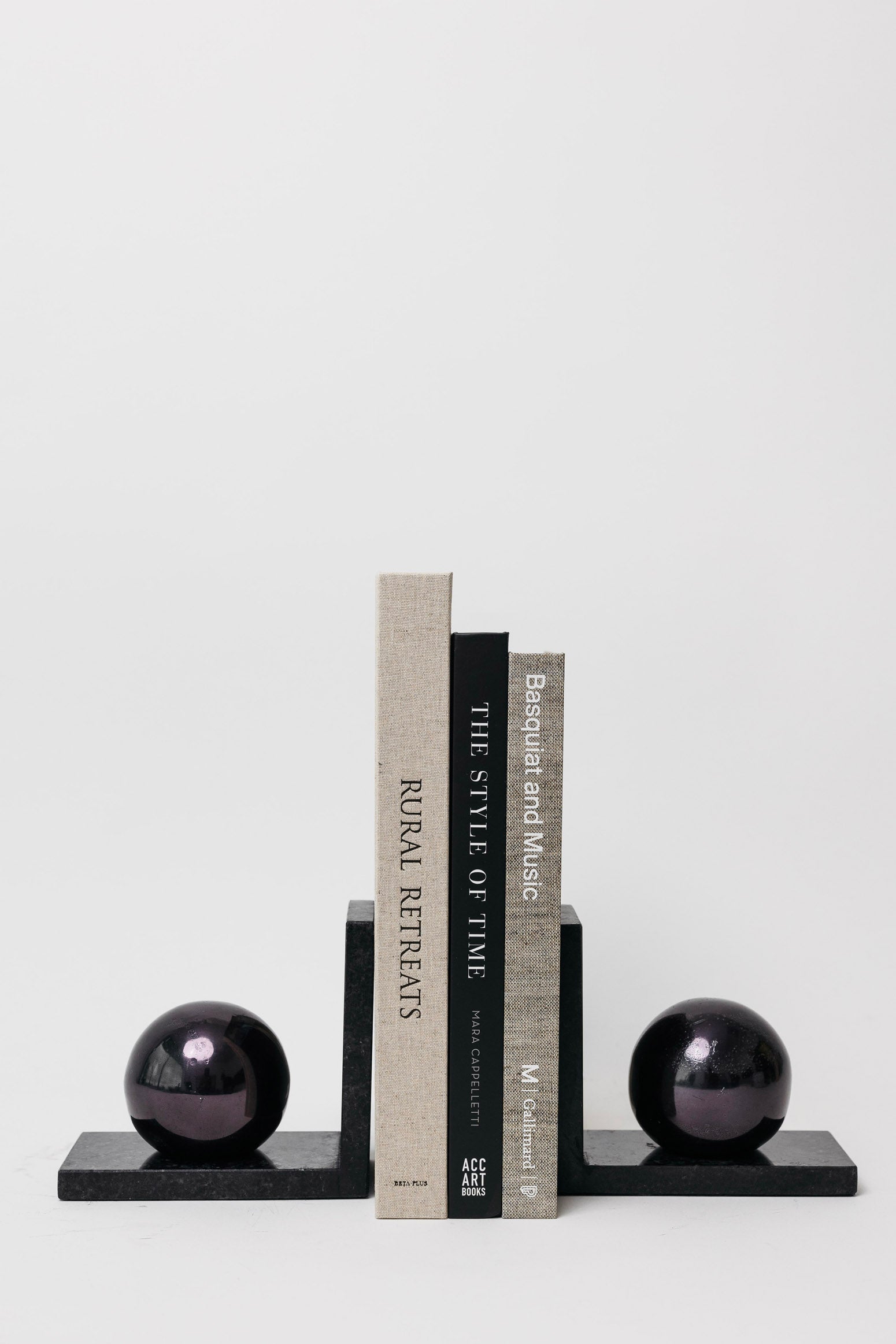 Add character + style to any shelf or table by placing these marble bookends on either side of a book grouping. // Wherever placed, this duo will add a modern meets vintage vibe to your space!