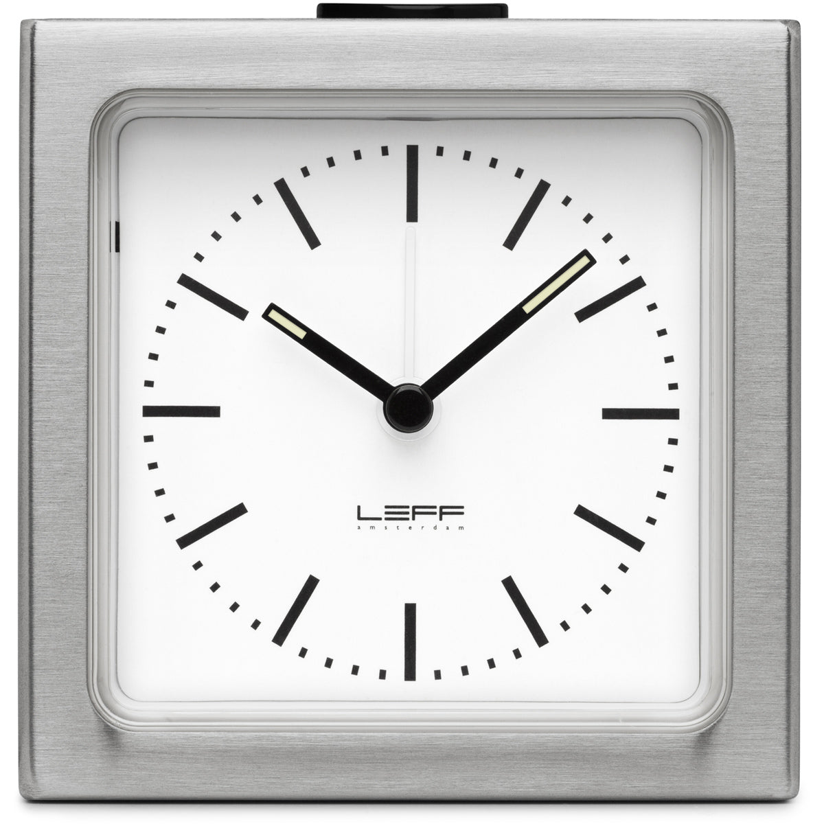 Block is an alarm clock with a small but strong appearance. A fusion of aesthetics and functionality, and a compromise between delicacy and robustness. The design is simple, but with a lot of surprising details. At night the fluorescent hands will become visible and the whole dial can be lit up by pushing the snooze button on top.