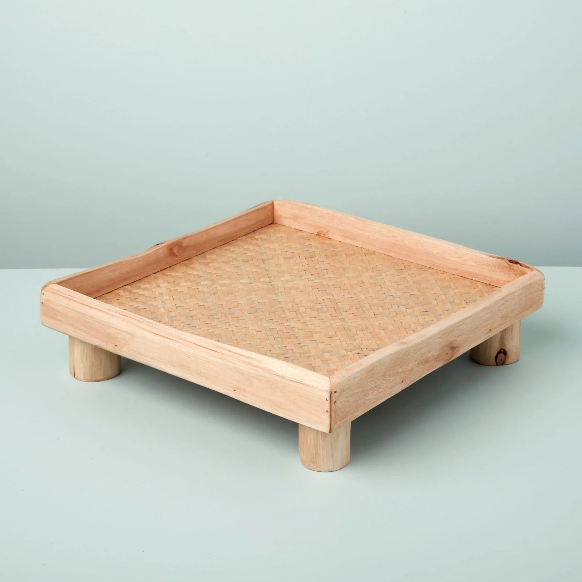 Blonde Reclaimed Wood & Woven Seagrass Square Footed Tray