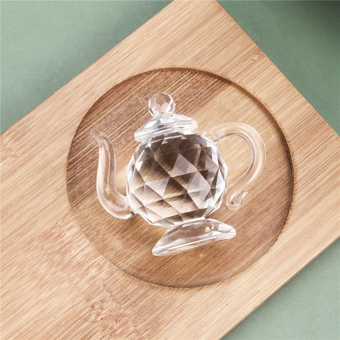 Crystal Teapot Figurine Chinese Collection Ornament Home Office Decoration 1.7-Inch
