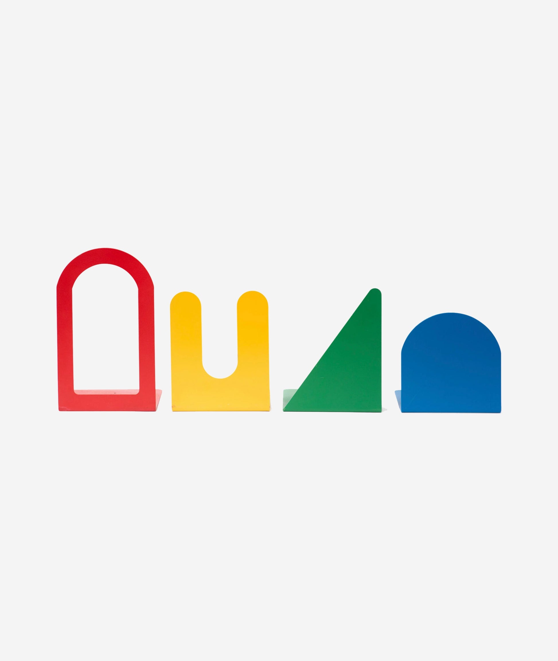 Add bold pops of color and visual interest to your bookshelves, or mantelpiece with this set of four Fenestra Bookends, which stack to form beautiful, modern compositions. When nested together, they resemble a window with a landscape view (“Fenestra” is Latin for “window”). The compact and versatile design helps you organize your books without taking up too much space, as they add character to your home. Made of steel, this set of Fenestra Bookends includes a bookend in blue (6.25"h), green (7.5”h), yellow (7.5"h) and red (10"h). Designed for MoMA’s collaboration with the MFA Products of Design program at the School of Visual Arts they are playful, decorative and functional.