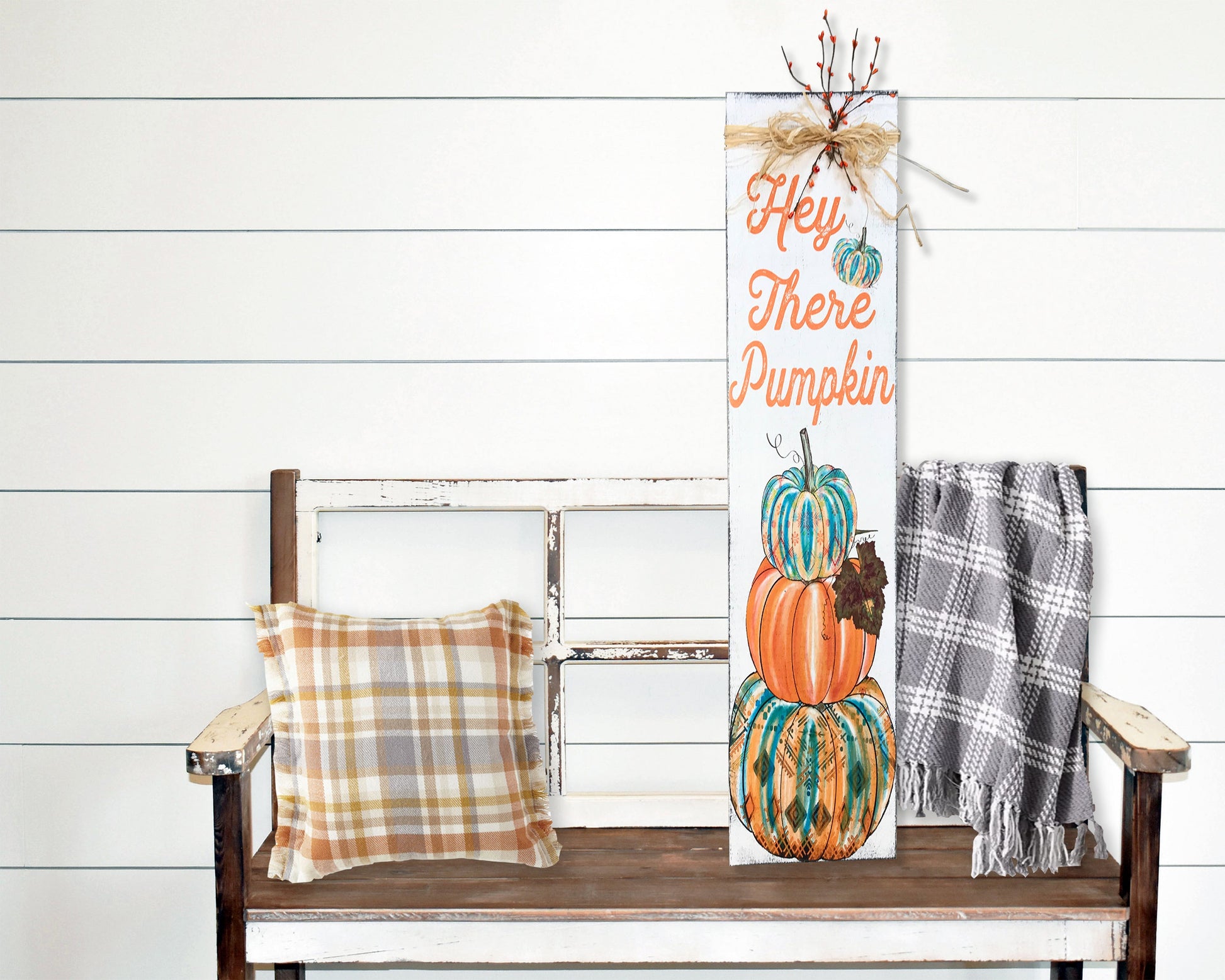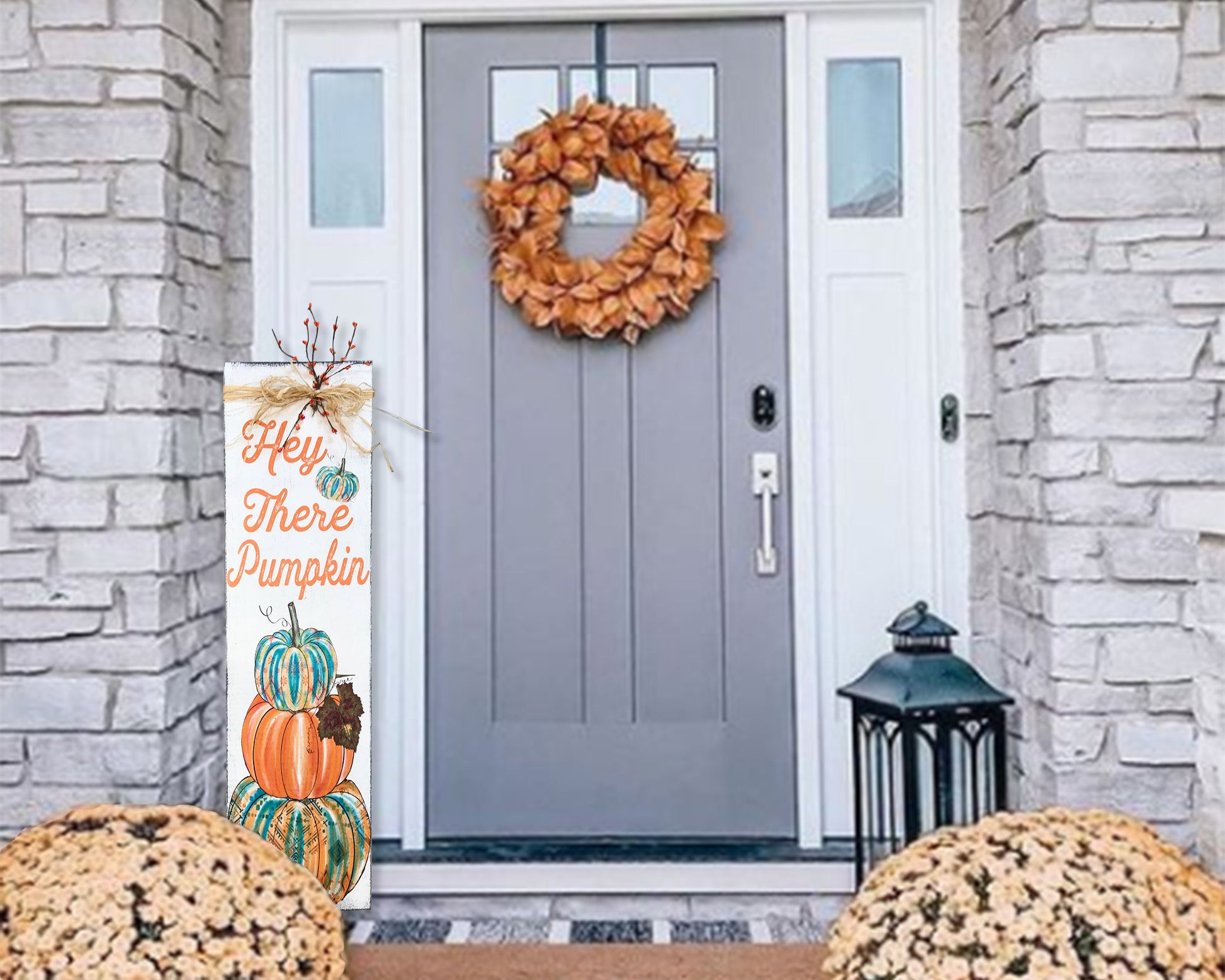 Hey there pumpkin! Greet your guests this Fall with our colorful porch sign. Pops of Turquoise and Orange are sure to be a show stopper.