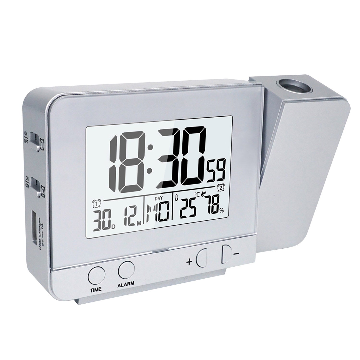 Multifunctional Alarm clock show following functions: time, date, double clock, temperature, humudity,and etc.