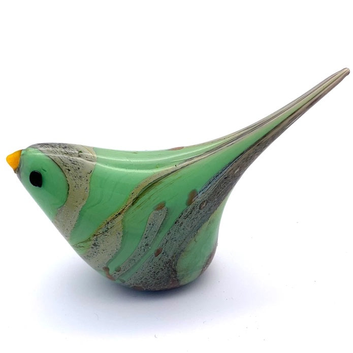 The elegant Lido Birds are hand blown by our glass master artisan on the Island of Murano. There are six colors: Blue, Green, Red, Ivory, Orange, and Turquoise. Each one has a different expression since they are all hand made! The artist uses 2 tones of Murano glass canes and infuses aventurina minerals to give them an extra shimmer. Each comes boxed and has a stamp of authenticity of Murano Glass.