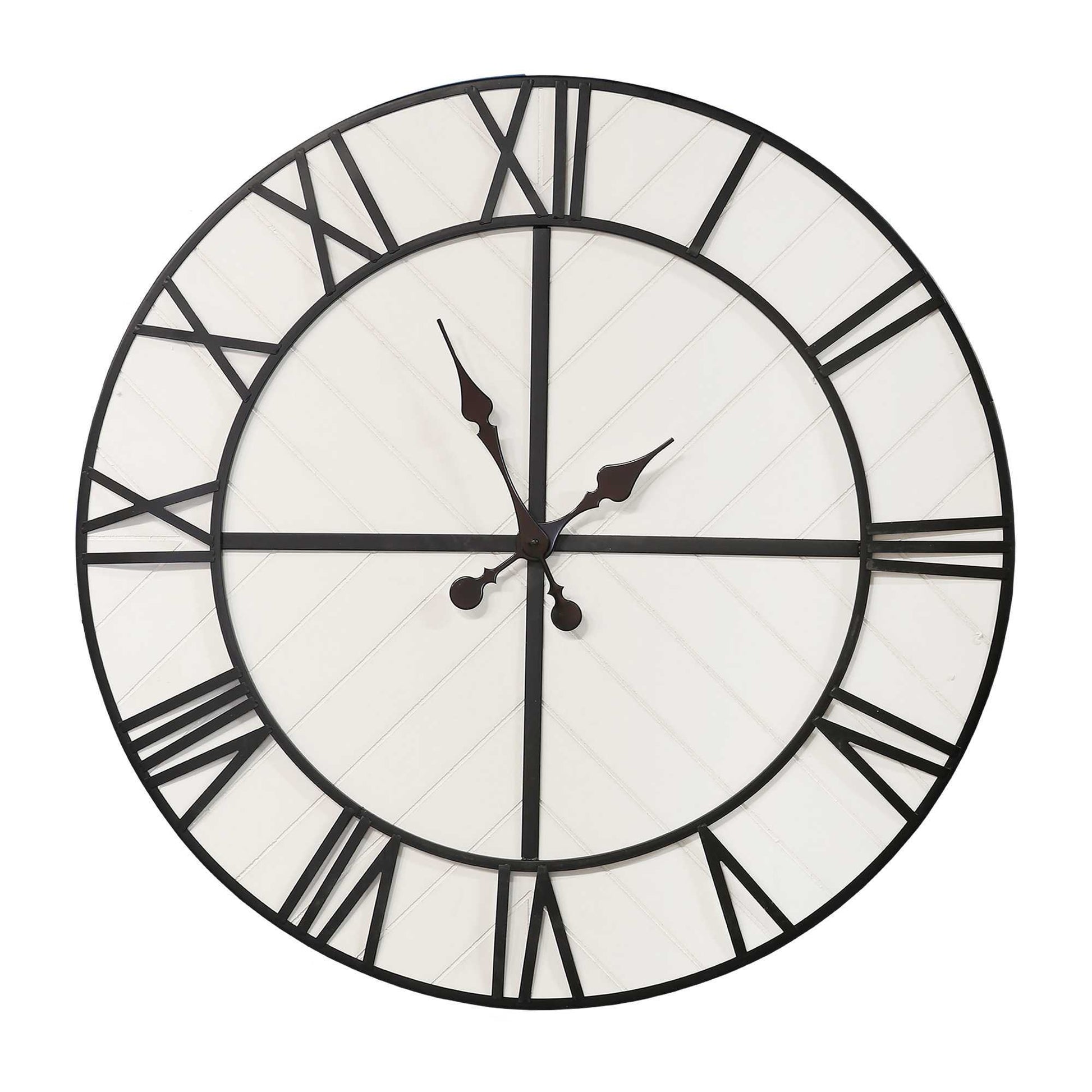 Capture an old-time feel with the Oversized 31.50-Inch Henry Wall Clock. A handcrafted piece remnant of years back is captured with angular shapes on the white wood base and finished with black metal Roman numeral details. You will be delighted with its beauty as you gaze up to see the time and the quality quartz movement for reliable timekeeping. Measuring 31.50 diameter x 1.57 W, this clock will stand out amongst your other modern farmhouse decor. Requires a 1 AA battery (not included).