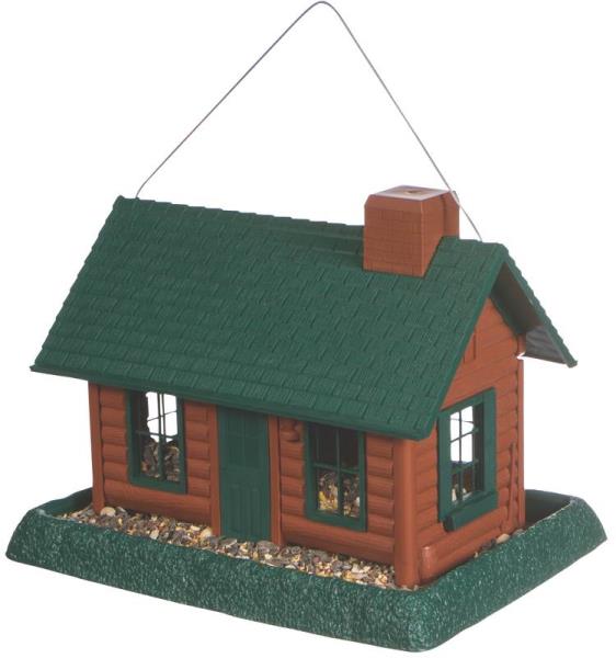 - Authentic Log Cabin style birdfeeder is made of durable molded plastic