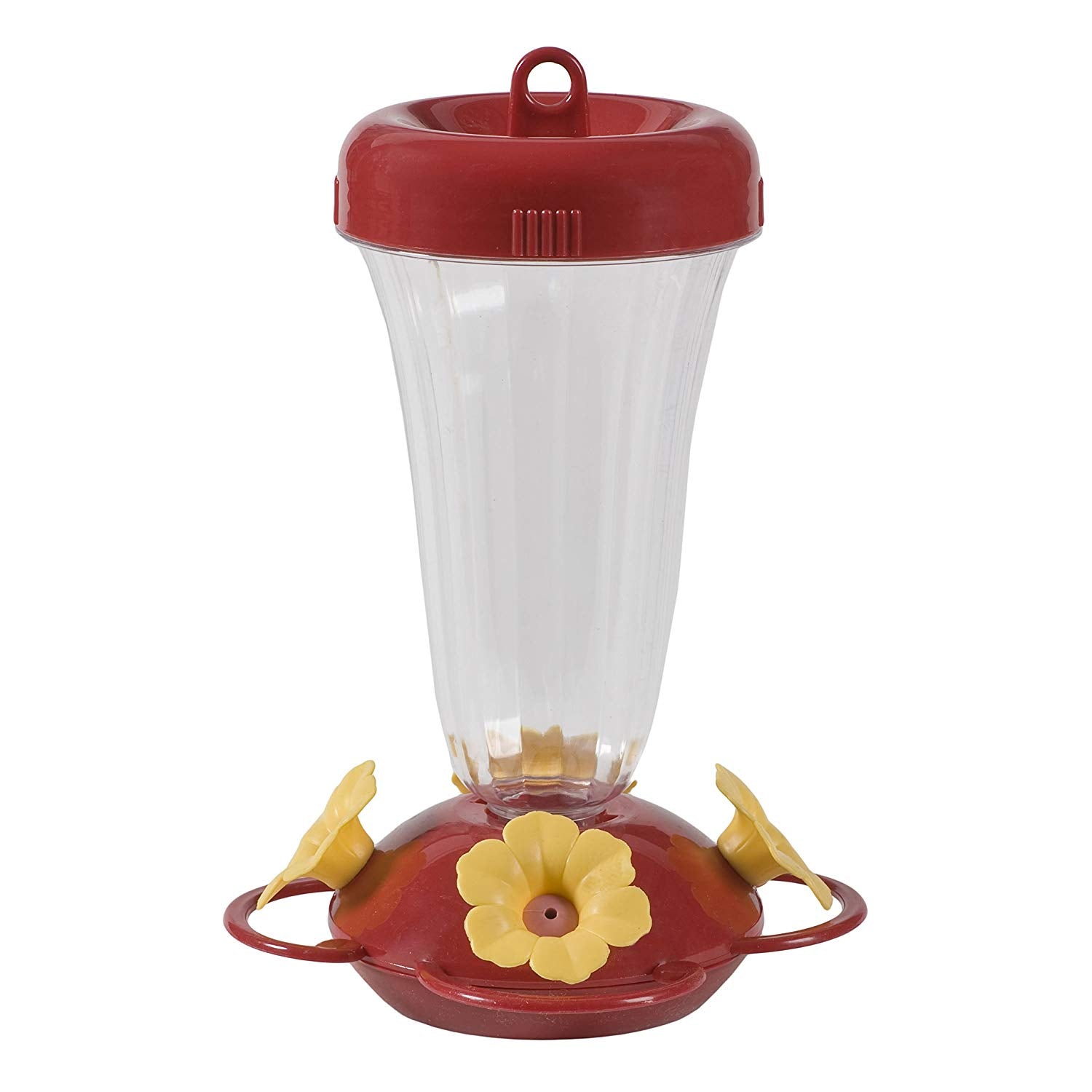 Feeding hummingbirds can be an incredibly rewarding experience, but it can also be time consuming. With the Perky-Pet Yellow Flower Top Fill Hummingbird Feeder, feeding the birds has never been easier. The unique top fill technology allows you to simply unscrew the cap, pour in the nectar, and you're ready to feed the birds! This design also makes it easy to clean. The four soft flower-shaped feeding ports offer a more natural feel, and hummingbirds will be attracted to the bright yellow color. The shatter resistant plastic bottle has a 16 oz nectar capacity to keep your hummers full and happy. Plus, with a built-in ant moat, ants will never be a problem for this feeder. Perky-Pet Top Fill Feeders are the Easiest and Most Convenient Feeders Yet!