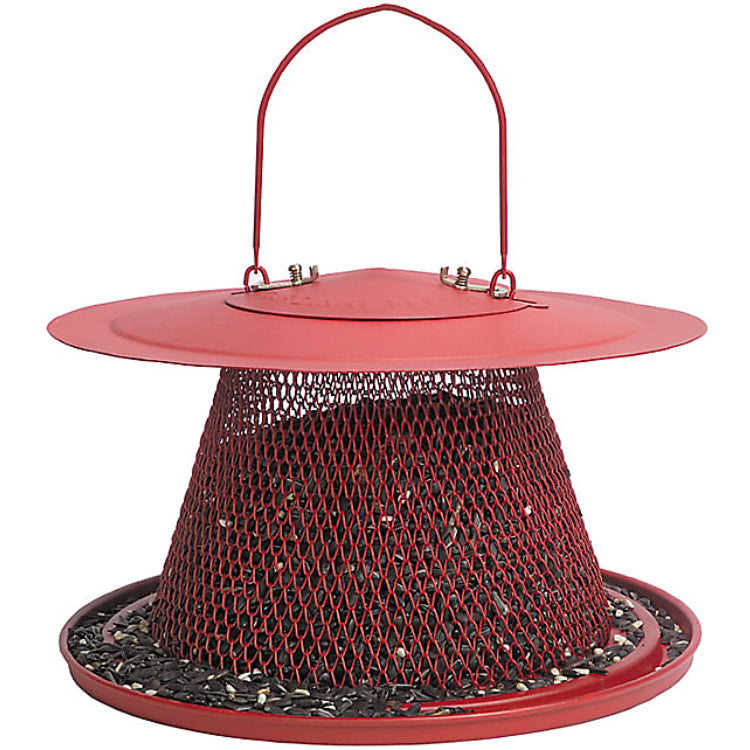 Make your backyard or garden the new hotspot for every bird in town with the Perky-Pet Red Cardinal Bird Feeder - you'll easily attract both clinging and perching birds.This charming 2.5 lb capacity feeder is a perfect combination of durable and attractive with its all-metal construction and beautiful bright red finish. For your convenience, this feeder is easy to fill and clean, as well as collapsible allow for space-saving storage when not in use. From grosbeaks and finches to chickadees and cardinals, you’ll be able to attract a variety of your favorite bird species to this feeder. The diamond-shaped mesh surface and circular seed tray create a large dining area to accommodate up to 15 birds at once. The mesh makes the perfect landing place for clinging birds, while perching birds appreciate the 360-degree seed tray. The Perky-Pet Red Cardinal Bird Feeder stands for durability. It has no wood and no plastic - it's all metal. The wire mesh design features a zinc-plated finish to resist rust, while the sturdy metal construction will help thwart squirrel damage. You can be sure this feeder will be a focal point in your backyard for many years to come. For your convenience, the Perky-Pet Red Cardinal Bird Feeder has a low-maintenance and simple design. The wire mesh and large reservoir make it easy to clean every square inch. In addition, this feeder has a wide-mouth opening to allow for mess-free filling. Simply open the lid and pour in the seed.
