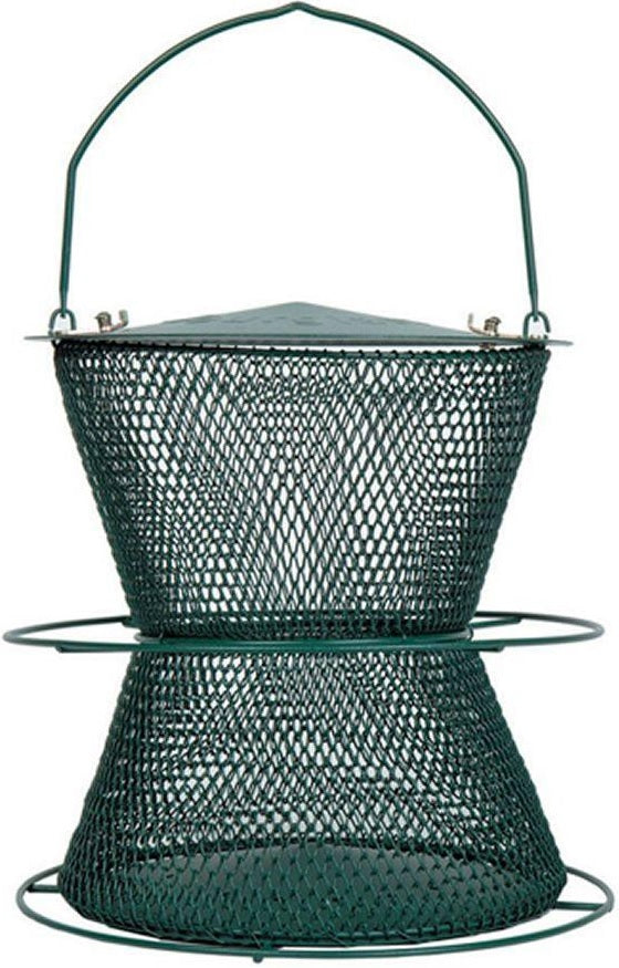 This large capacity feeder is a wonderful addition to your yard. Enjoy hours and hours watching birds dine at this large capacity feeder. Without the use of plastic or wood components, the all-over metal mesh construction of the Forest Green Hourglass No/No Feeder stands up against squirrels and other small animals that may try to access birdseed.