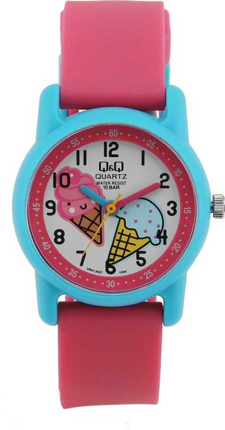 Q&Q Kids Waterproof Watch in Pink w/ Ice Cream Cones