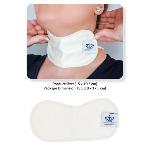 Designed by a naturopathic doctor, the Thyroid Pack is made with an inner 100% organic cotton layer that touches the skin, an outer less-mess layer of polypropylene, and an adjustable nylon strap.