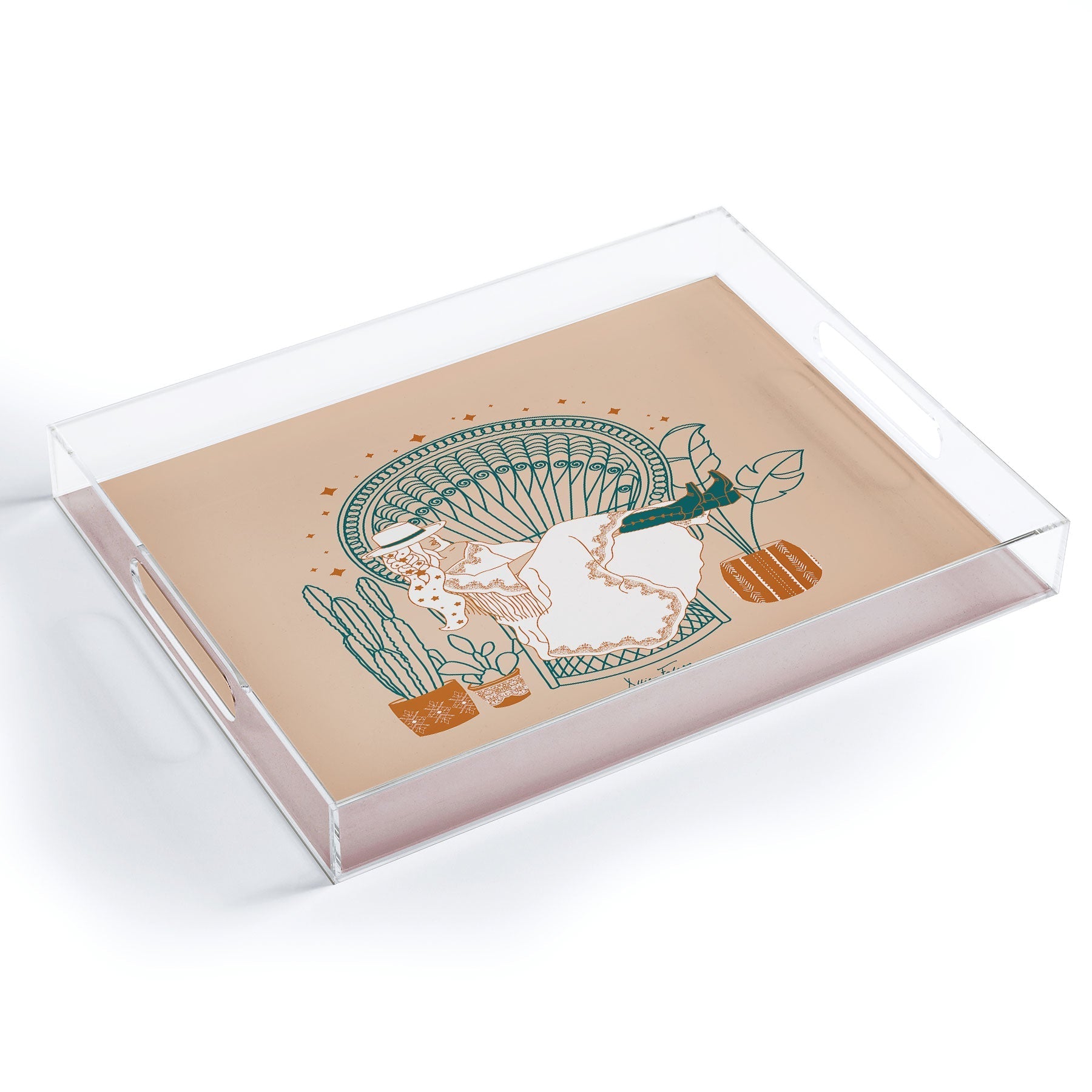 Tray chic. The Texas Bohemia acrylic tray come in a small and medium-size to accommodate all your countertop organizational needs. Featuring designs from our curated selection on the bottom panel, the acrylic trays can adapt to whatever decor style you love and the see-through side panels give them a modern flair. The medium-sized tray even comes with handles, allowing you to take it around the house for nail supplies or, dare we say, breakfast in bed! And the best part? Every purchase pays the artist who designed it—supporting creativity worldwide.