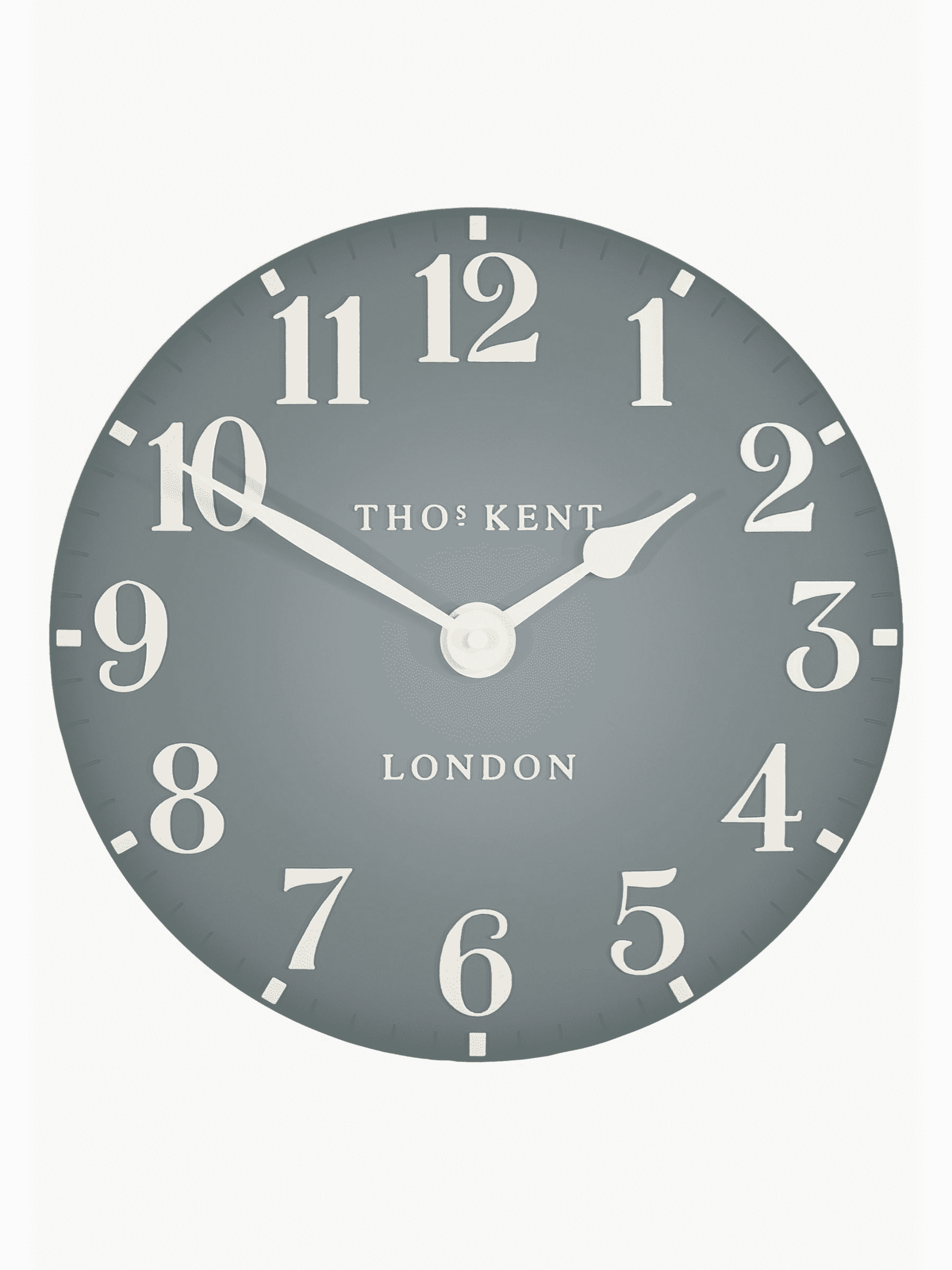 Thomas Kent Arabic Flax Blue Wall Clock 30cm is a handsome, good-looking clock that's perfectly proportioned. Hand painted in subtle grey blue tones with contrasting numerals and hands.