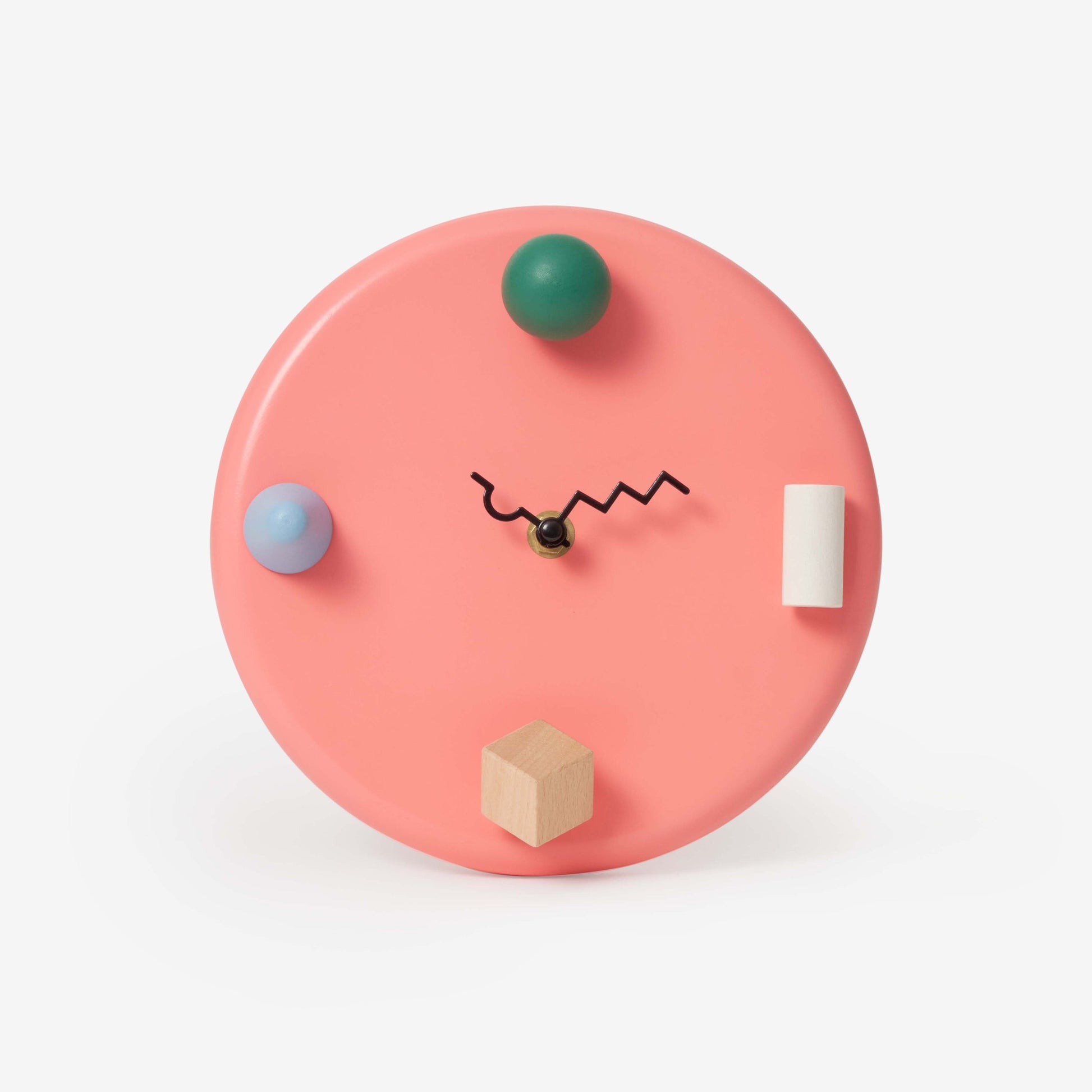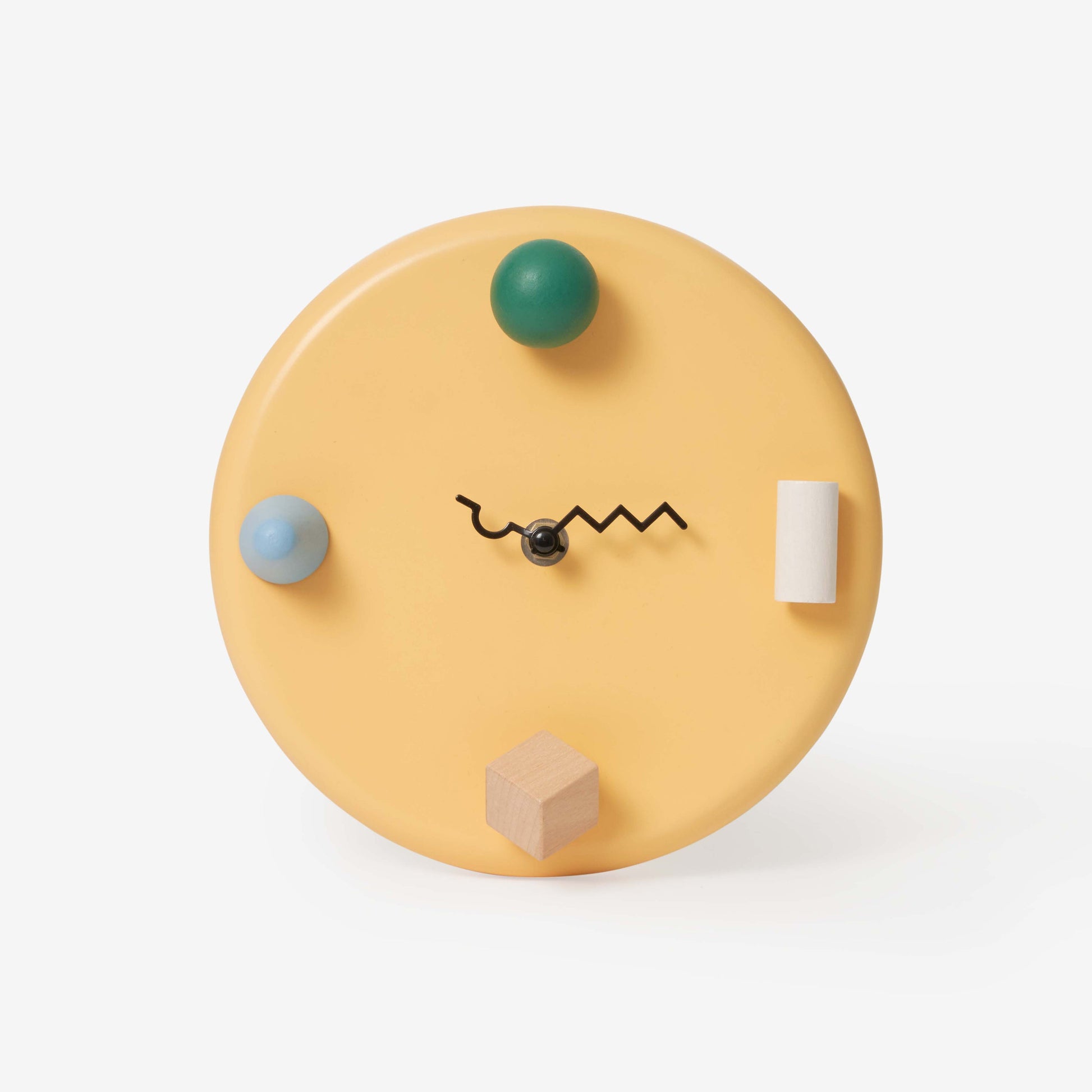 Through three-dimensional, abstract shapes, this clock offers a way to visualize the passing of time in a playful way. Each hour is relatively represented by a sphere, cylinder, cube and bell. Place it wherever you need a gentle reminder to take time less seriously.
