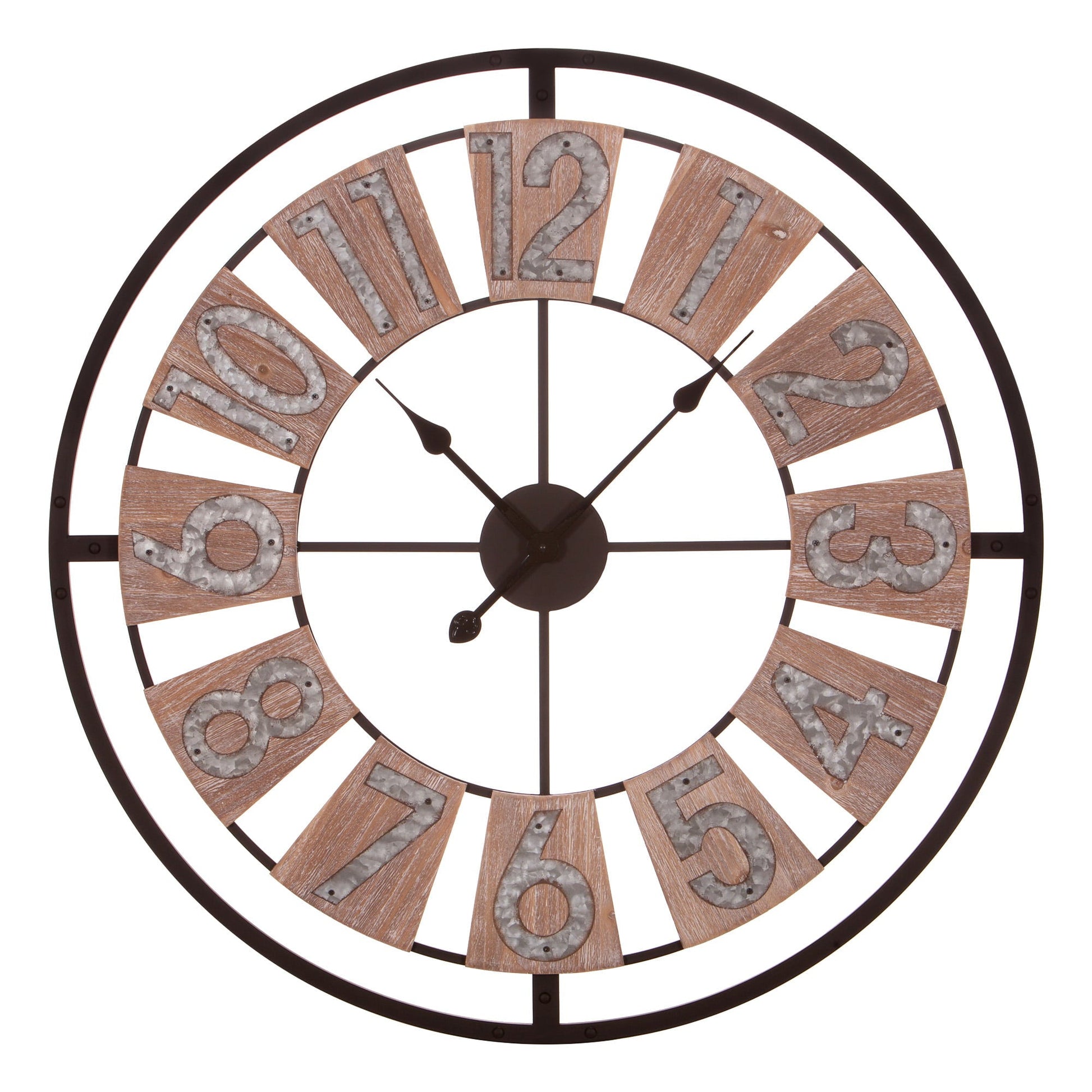 30" Oversized Rustic Round Wall Clock Wood & Galvanized Metal