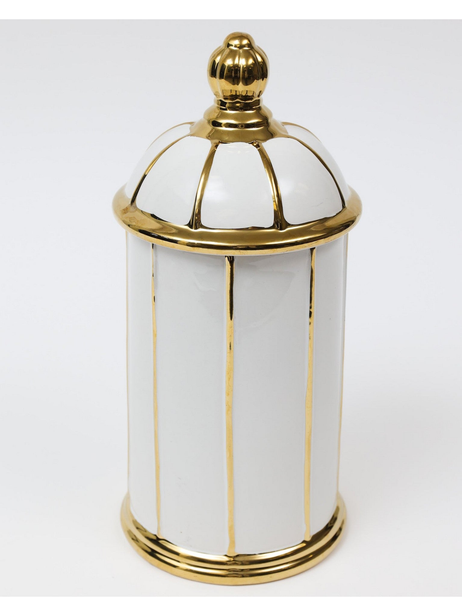 White Ceramic Lidded Jar with Gold Linear Detail (3 Sizes)