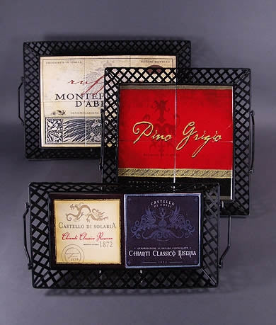 Wine Label Set of 3 Trays with Tiles