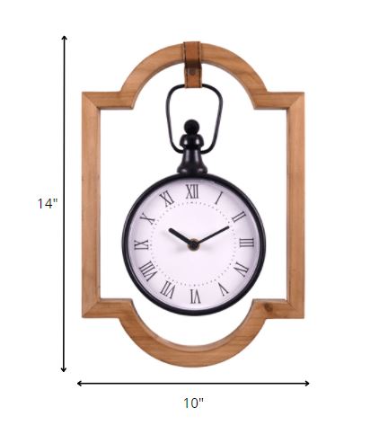 Add a touch of nautical décor to any space in your home with this Wooden Frame Hanging Wall Clock. The frame of this clock is made from wood and has a motif inspired design to it. The varnish on top is left light to allow for the wood grain and details to show through. Attached to the top of the frame there is a brown leather strap which holds the hanging clock up. The clock has a circular shape with a white watch face and black indexes and numbers. The top has an ornament shape to which there is a hook attached. This hook is then attached to the leather strap. Use this clock in your home office, your living room, or your bedroom to elevate the look of the whole space. 14" H x 10" W x 1" D